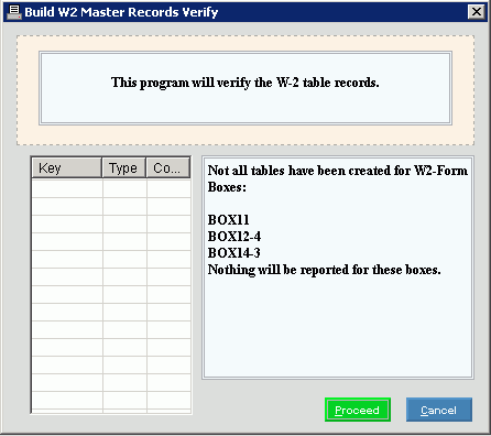 To run the routine after confirming the Tax Year is correct, click Proceed or press [ENTER]. Keyboard shortcut: [ALT + p] |