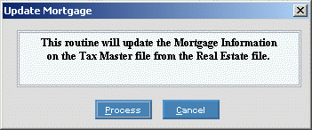 Note: To see information about manually maintaining the mortgage fields, see Tax Master Maintenance - Mortgage Tab.