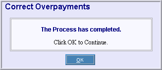 At the Correct Accounts with Overpayments prompt window, choose the selections. To see the prompt options, click More.