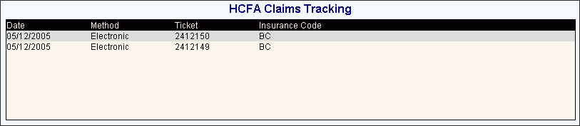 HCFA Claims Tracking - The middle area displays HCFA claims tracking.