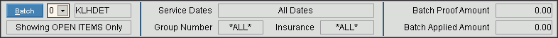 Displays the Insurance Code for this batch. Tip: *ALL* indicates no Insurance Code was entered to limit the tickets for this batch. |