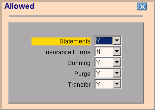 Note: The system automatically creates the Allowed fields for each patient and assigns default values of Yes. You only need to change the fields that you want to set to No for the patient.