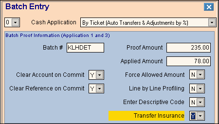 Select the By Ticket (Auto Transfers & Adjustments by %) option in the Cash Application field.