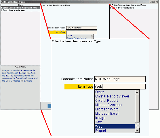 Add Console Item Wizard - Enter Console Item Name and Type Step