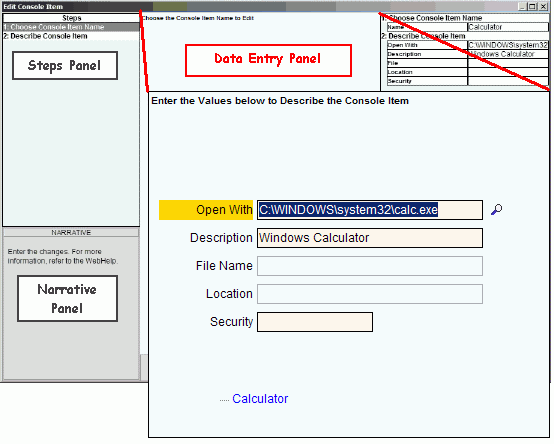 Enter the path and file name for an executable file (*.exe) that you want to launch from the consoles. (unlimited characters) Example: To specify the Microsoft Calculator, enter... Tips: