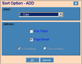 Sort Options - Add Prompts Tips: A maximum of nine sort fields is allowed. To see information about other Sort Options buttons, refer to Report Writer - Sort Options. |