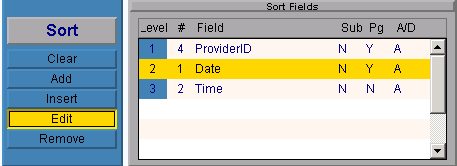 When you click one of the Sort Options buttons described in the table below, you will see the appropriate entry fields in the right pane.